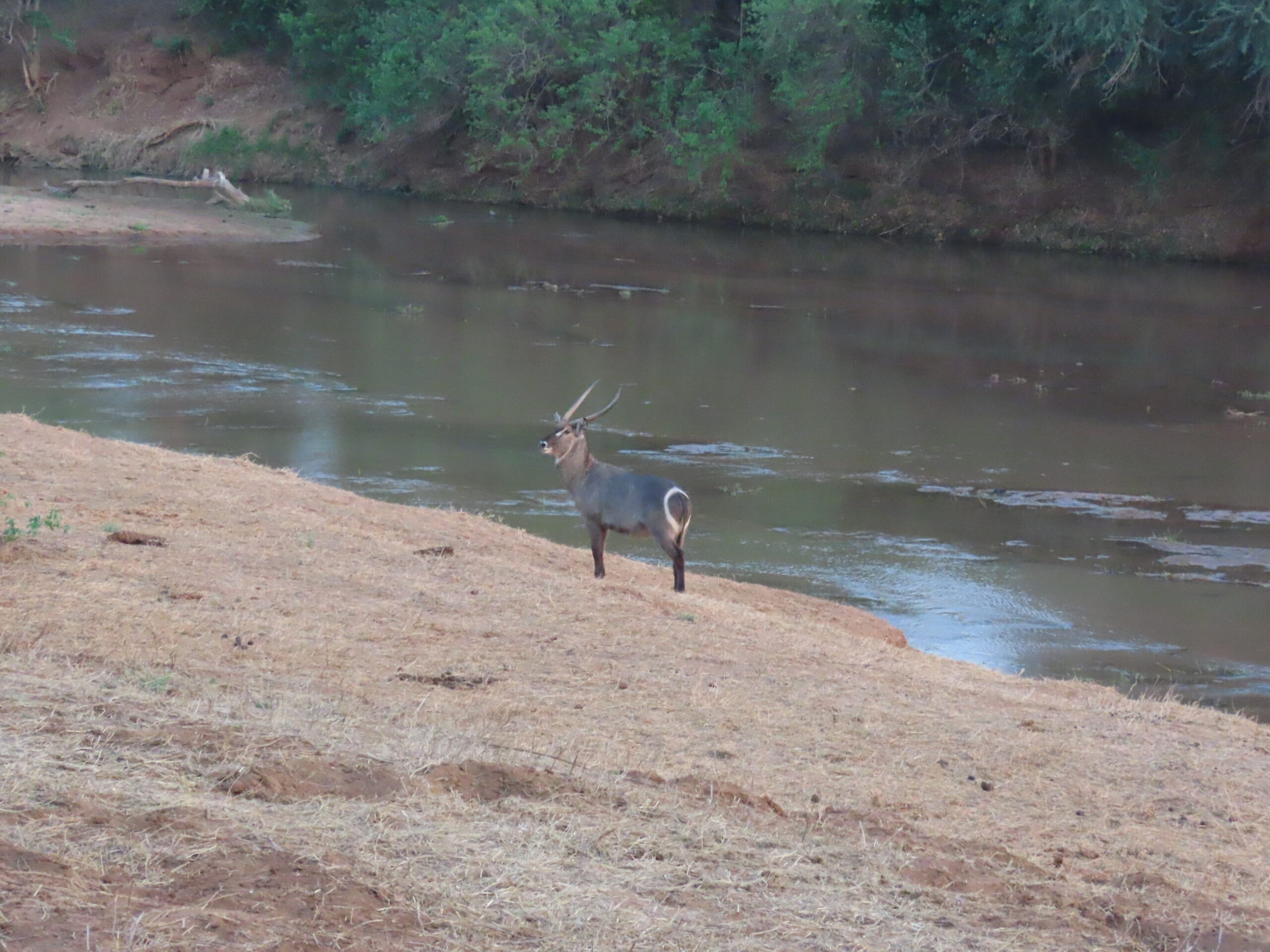 From Musina, we swung northwest on a very potholed road towards Pont Drift, leaving farms behind and mostly seeing the high fences of game farms. I asked about how hunting is regulated. Under South African law, wildlife on private property is owned by the landowner. If they want to protect their assets, they have to put up high fences (of which we saw many). There are no public lands in South Africa, so all hunting takes place on private property through outfitters who make deals with landowners. But hunting itself is managed by the government’s conservation department. Landowners must count and register animals with the government, and report when and why an animal dies. The Conservation authority issues permits based on conditions: right now, in a drought, they issue more permits to take pressure off the land. When conditions improve, fewer permits will be issued to allow populations to rebuild. Stock is regularly replenished through public auctions.
