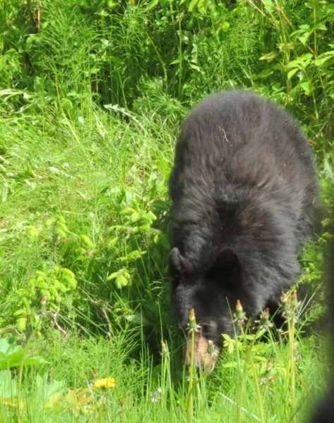 We passed a little black bear munching [something] in the grasses along the highway.