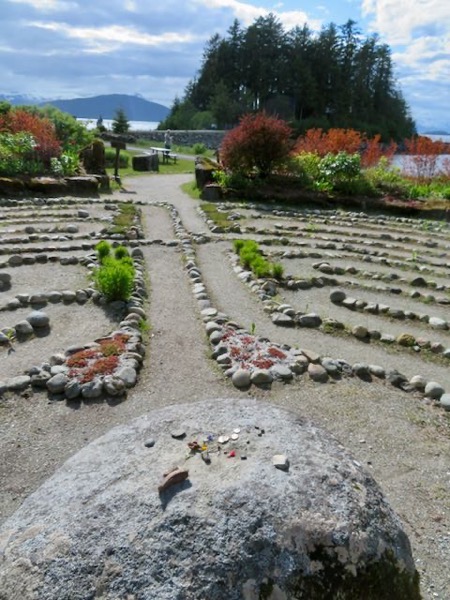 Our final stop was at the Shrine of St. Therese, described in the travel literature as a magical spot. St. Thérèse of Lisieux lived in France in the late 19th century, She was canonized in 1925 for her “little way” of loving God and neighbor. How did a French saint who dies at 24 and never left France come to be the patron saint of Alaska with a national shrine? The first bishop of Alaska, Bishop Joseph Raphael Crimont, was a French Jesuit who knew her family and was deeply devoted to the saint. He successfully lobbied for land for a retreat center in Alaska in her honor. The complex was constructed between 1932, and 1945, with the chapel and gardens added in 2001.